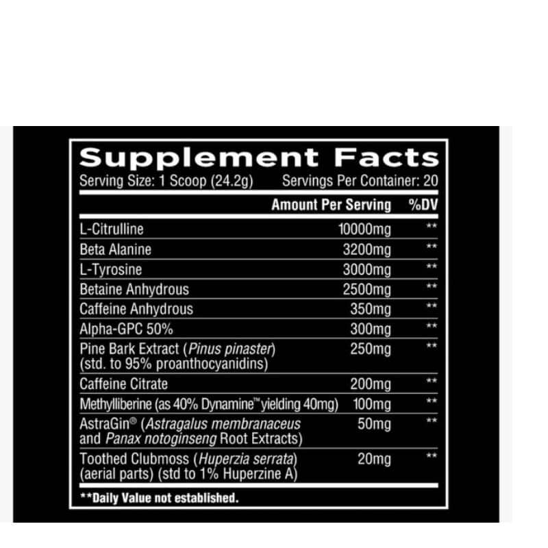 To sharpen your mental edge and amplify motivation, the tyranny fighting formula includes L-Tyrosine, Alpha-GPC, and Huperzine A, a synergistic trio for focus, neurotransmitter support, and memory enhancement. For relentless energy, Caffeine Anhydrous, Caffeine Citrate, and Dynamine™ team up for a fast-acting, sustained stimulant experience without the crash. Dynamine™ in particular adds a rapid mood and motivation boost with minimal cardiovascular strain.