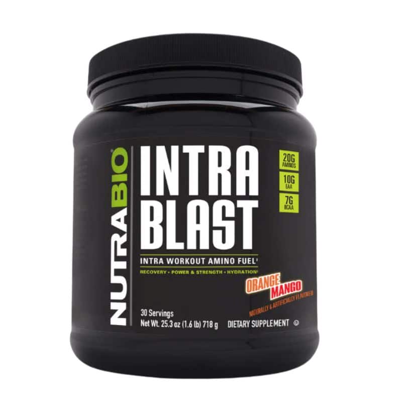 NutraBio Intra Blast utilizes a clinically dosed formula, which includes naturally fermented HPLC-quality amino acids and BCAAs. This high-powered amino acid matrix helps promote and preserve lean muscle tissue, aids in recovery, reduces muscular fatigue during training, and minimizes post-training soreness.